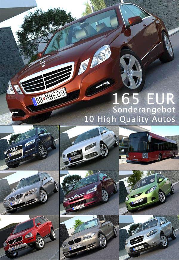 Dieses Bundle besteht aus 10 unterschiedlichen 3D-Automodellen speziell für Architekturvisualisierungen und 3D-Animationen. Realistische, aber dennoch polygonsparende Fahrzeuge, C4D und VRAY Materialien, steuerbar mittels xPresso