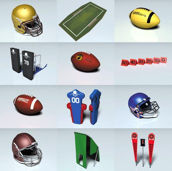100 detaillierte 3D-Modelle zum Thema American Football.