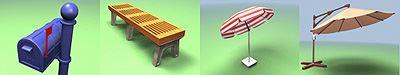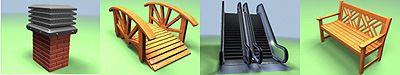 200 Objekte für professionelle Architekturvisualisierung. Enthalten sind folgende Themen: Garten-Möbel, Briefkästen, Parkbänke, Lampen, Balkone, Säulen, Zäune, Sonnenschirme, Aufzüge, Rolltreppen und viele mehr.