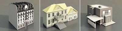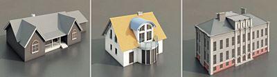 70 sehr detaillierte 3D-Modelle von Gebäuden: Einfamilienhäuser, Fabrikgebäude, Hochhäuser etc.