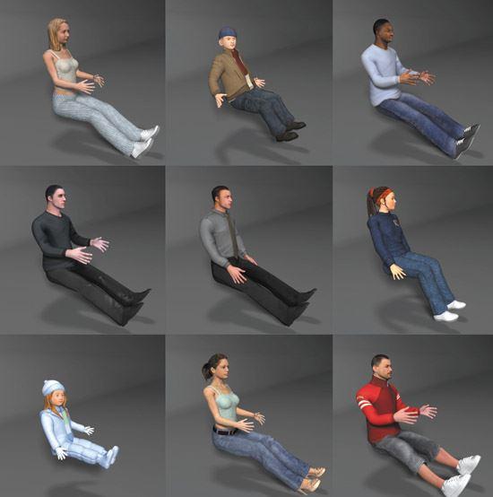 Das Produkt Dosch 3D: Car Driver enthält 18 detaillierte 3D-Modelle von 11 Personen, um diese in diversen 3D-Fahrzeugtypen als Fahrer oder Beifahrer einzusetzen. Alternativ können diese Modelle natürlich auch auf Parkbänke, Stühle oder andere Sitzgelegenheiten gesetzt werden.