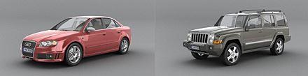 Enthalten sind Alfa Romeo 159, Aston Martin DB9, Audi R8, Audi RS4, Audi TT, Ford Fusion, Jeep Commander, Land Rover Freelander, Lexus LS460, Mercedes E-Klasse, Mercedes GL-Klasse, Opel Astra, Opel Corsa, Peugeot 407SW, Pontiac G6, Saab 9-5, Skoda Roomster, Toyota Prius, Toyota Yaris.