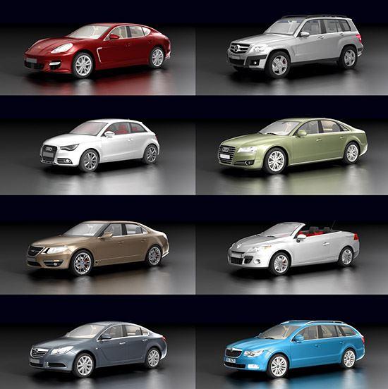 18 detaillierte 3D-Modelle aktueller Autos.