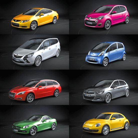 15 sehr detaillierte und komplett texturierte 3D-Auto-Modelle.
