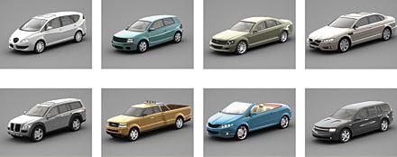 Ideal zur Darstellung von realistisch wirkenden Autos in Animationen, Illustrationen und Visualisierungen - ohne dabei auf Markenrechte achten zu müssen.