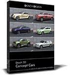 12 sehr detaillierte und komplett texturierte 3D-Modelle von Konzept-Autos.