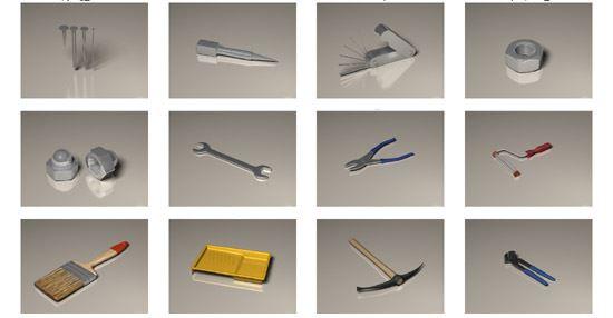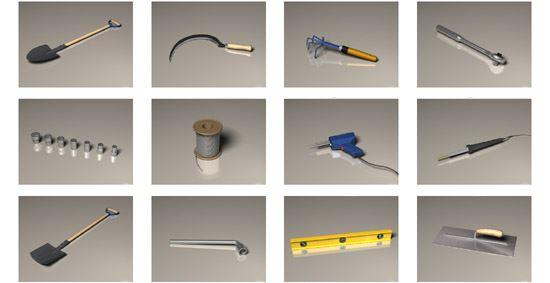 100 3D-Modelle von typischen Handwerker Werkzeugen.