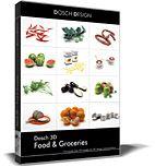Das Produkt DOSCH 3D: Food & Groceries enthält 170 sehr detaillierte und voll texturierte 3D-Modelle von Nahrungsmitteln. Hier finden Sie alles, von Essenszutaten (verschiedenste Gemüsesorten und Obstarten; Fisch, Käse, Konserven) über diverse fertige Speisen und Beilagen (Suppen, Pommes Frites), bis hin zu einer Reihe köstlicher Desserts (Torte, Eisbecher). Ebenso sind Töpfe und Pfannen enthalten.