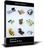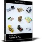 Dosch 3D: Games & Fun enthält 30 detaillierte 3D-Modelle von Brettspielen (Schach, Backgammon), Wurf-spielen (Darts, Bocce, Football, Boomerang), Tischspielen (Fussball, Hockey, Billiard) als auch diverse elektronische Spiele (Spielautomaten, Race-Car).