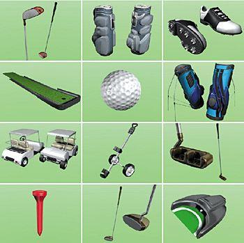Das Produkt DOSCH 3D: Golf Equipment enthält 50 3D-Modelle von Golf Ausrüstungsgegenständen.