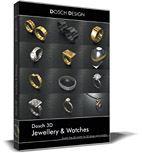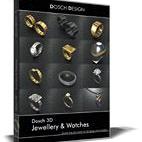 Das Produkt DOSCH 3D: Jewellery & Watches enthält 50 detaillierte und voll texturierte 3D-Modelle von Schmuck (Ringe, Ohrringe, Manschettenknöpfe, Armbänder, Halsketten), und ein Dutzend Armbanduhren.