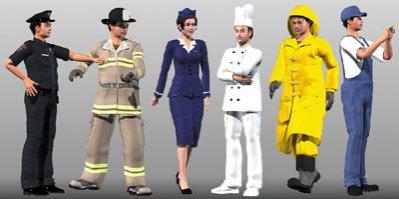 216 detaillierte und komplett texturierte 3D Modelle typischer Berufsposen.