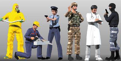 Enthaltene Berufsgruppen: Monteur, Feuerwehr, Klinikpersonal, Soldat, Sondereinsatzkommando, Polizei, Arbeiter in Schutzanzug, Koch und andere.