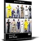 Dosch 3D: Job Poses enthält 216 detaillierte und komplett texturierte 3D Modelle typischer Posen unterschiedlicher Berufe. Das Produkt ist ideal für Architekturvisualisierung und technische Illustrationen. Neu in der Version 1.1: enthalten sind nun auch komplett geriggte Versionen der 3D-Modelle für Cinema4D (V12 und höher).