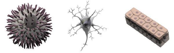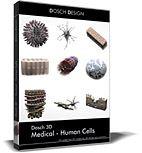 50 texturierte 3D-Modelle von menschlichen Zellen.