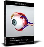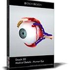 Dosch 3D: Medical Details - Human Eye enthält ein detailliertes 3D-Modell des menschlichen Auges, inklusive optischer Nerv, Blutgefäße, Muskeln, Netzhaut, Tränendrüse und mehr.