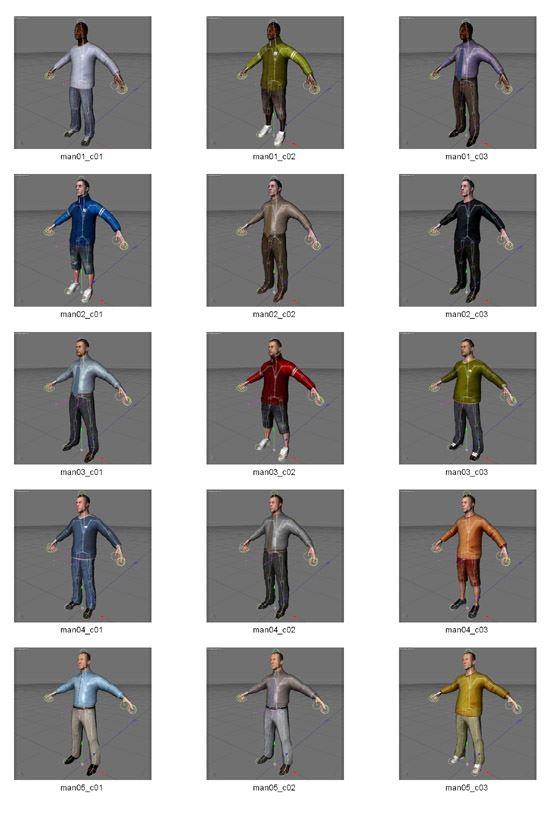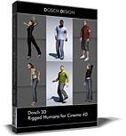 30 "geriggte" 3D-Modelle von Menschen für den direkten Einsatz in Cinema4D. Die 3D-Modelle sind für Animationen vorbereitet und können von Ihnen ganz leicht in die gewünschten Posen gebracht werden.