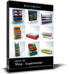 Detaillierte 3D-Modelle von Ladeneinrichtung für Supermärkte und Lebensmittelgeschäfte.