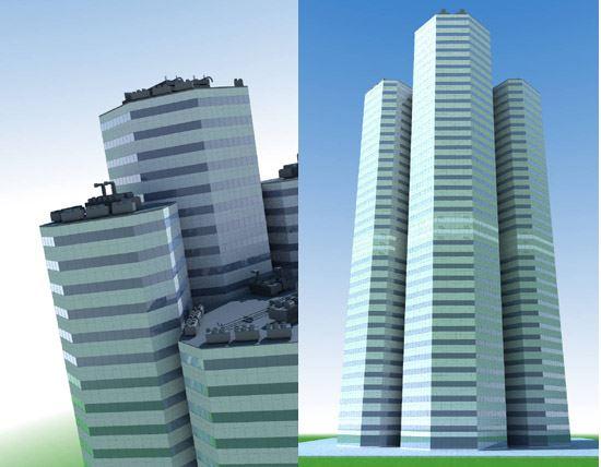 25 detaillierte 3D-Modelle von Hochhäusern.