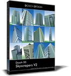 Das Produkt DOSCH 3D: Skyscrapers V2 enthält 25 detaillierte und voll texturierte 3D-Modelle von Hochhäusern.