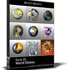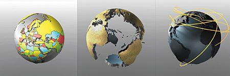 40 texturierte 3D-Modelle von Weltkugeln. Die Modelle reichen von stilisierten technischen Darstellungen bis hin zur realistischen Darstellung der Erde. Auf der Basis dieser 3D-Modelle können Sie in kürzester Zeit Animationen erstellen, politische Grenzen aufzeigen und Zusammenhänge verdeutlichen.