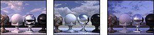 Diese Technik erspart dem 3D-Designer das aufwendige manuelle Setzen von vielen Lichtquellen und auch das langwierige Experimentieren mit Farbgebung und Stärke der Lichter. Die HDRIs beinhalten auch die Information, ob es sich um eine direkte Beleuchtung (z.B. Sonne, Halogenstrahler) mit harten Schatten - oder um einen bewölkten Himmel/Neonröhre mit diffuser Beleuchtung und somit weichen Schatten handelt.
