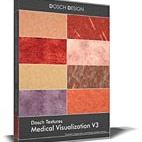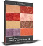 Das Produkt Dosch Textures: Medical Visualization V3 enthält 140 nahtlos kachelbare Texturen in hoher Auflösung, welche auf 3D-Modelle und 3D-Szenen angewendet oder in den meisten Bildbearbeitungsprogrammen (z.B. Photoshop) bearbeitet werden können.