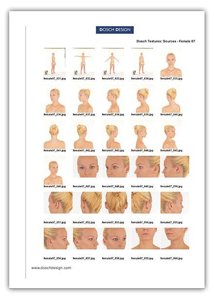 Verwenden Sie die professionellen Aufnahmen des weiblichen Models um Texturen für Ihre ganz individuellen 3D-Charaktere zu erstellen.