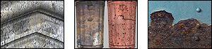 Glänzende Metalle werden rostig und korridiert, ein Farbanstrich zeigt Verbleichen und abblätternde Farbe, Stein und Beton finden sich mit Schimmel, Feuchtigkeitsflecken etc. wieder.