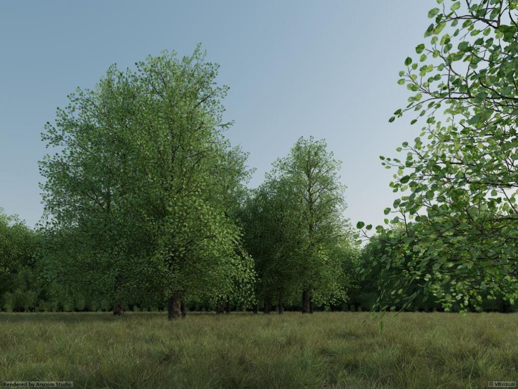 Ca. 5000 Polygone für einen Baum (1500 - max. 8000). Das bedeutet enorme Entlastung des Rechners. Auch Dateien mit vielen Pflanzen lassen sich damit problemlos handhaben. |